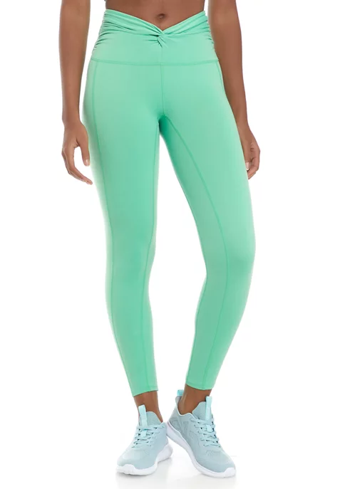 Move freely through light activities and studio workouts in these so sporty and sleek leggings featured in a smooth, compressive design and stretch fit with an ultra-flattering V-waistband accented with ruched detailing, and ankle-cropped legs.