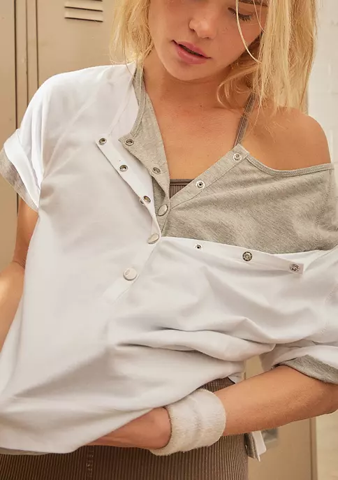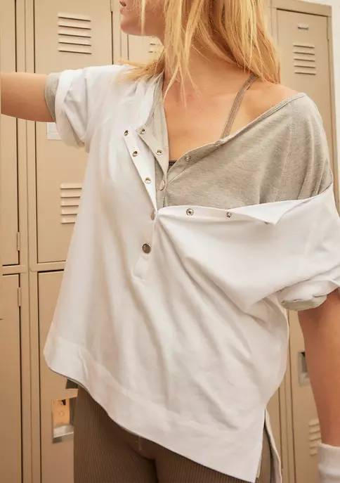 Layer up for your workout with this not-so-average tee featured in a Henley-inspired style with a button-up neckline and side slit details.