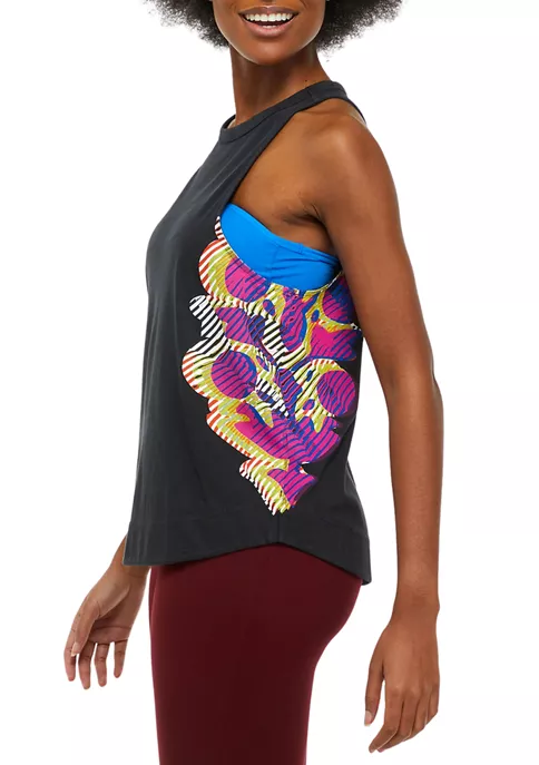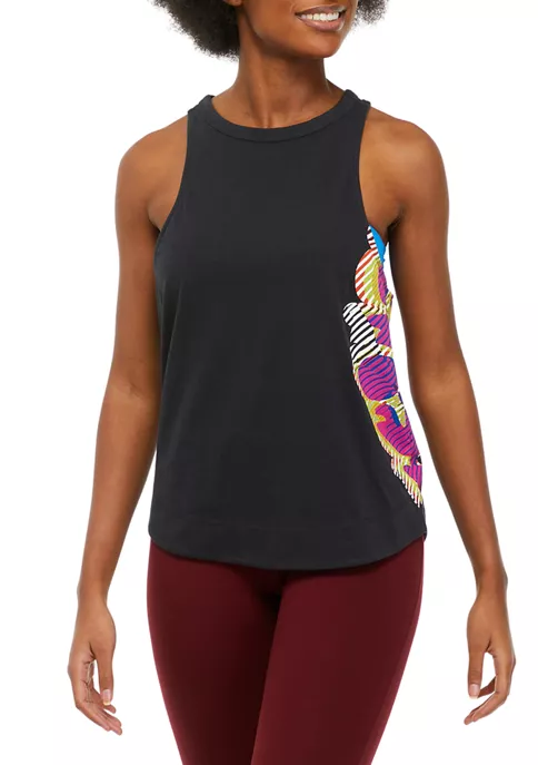 Layer up for your workout in this so essential and so cool tank featuring a high neckline and a lightweight fit with bold graphics on the sides.