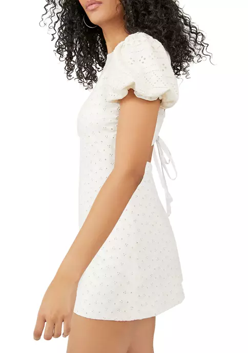 Just as effortless as it is essential, this timeless mini dress is featured in a staple, A-line silhouette with puffed sleeves and lace detailing throughout for added dimension.
