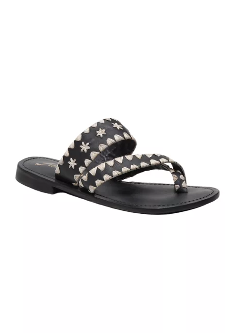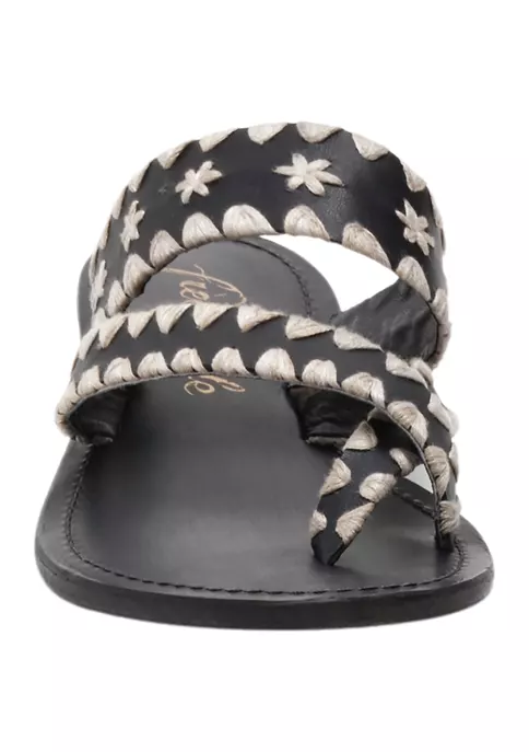 Crocheted florals decorate the strappy silhouette of the Bella Caia Sandals from Free People formed from smooth leather.