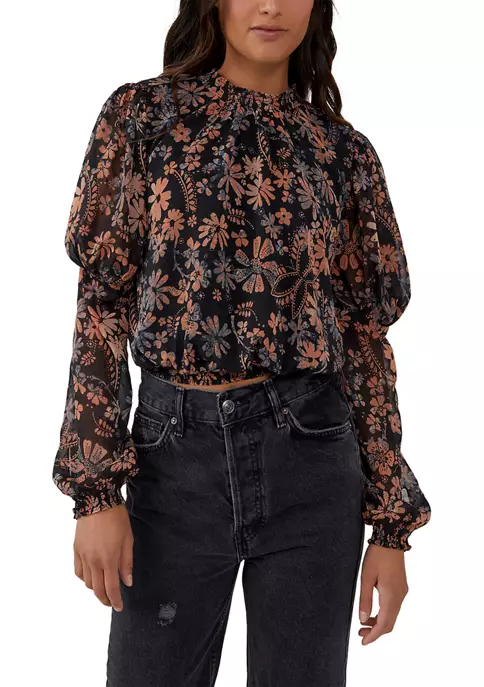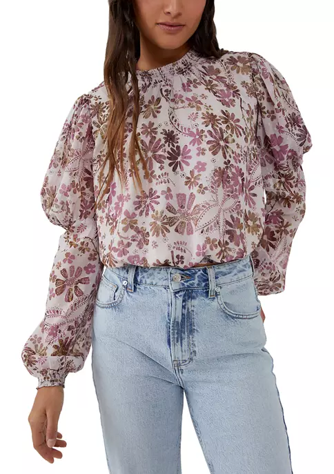 Juliet sleeves add billowy volume to the Clarissa Printed Top from Free People. Pair it with your favorite jeans and heels for a put-together look.