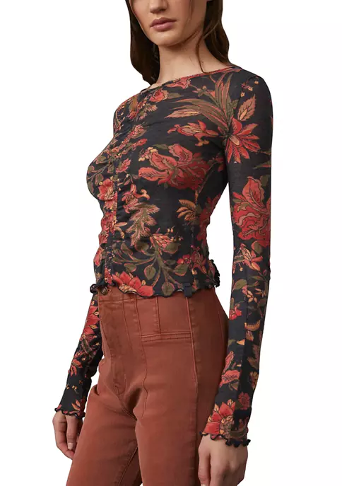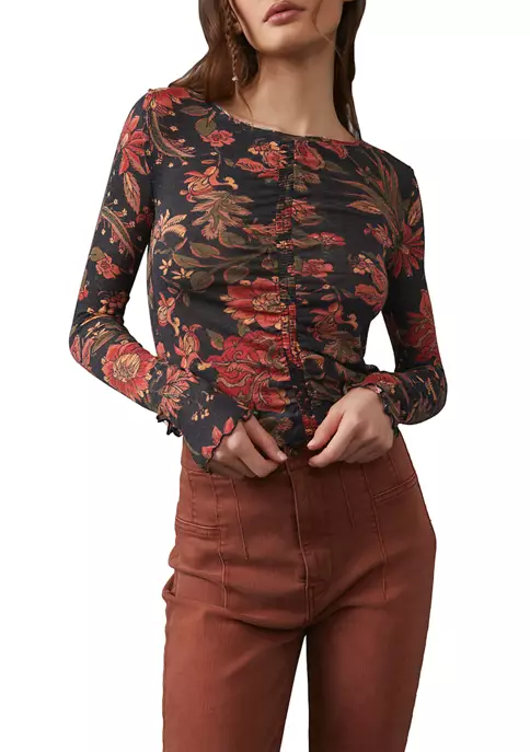 Featuring a flattering cinched detail down the middle, this floral print t-shirt from Free People looks great with your favorite high-waisted jeans.