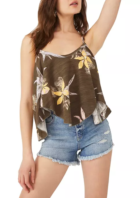 A ruffly silhouette accentuates this tank from Free People, crafted out of cotton and blossoming with sweet florals.