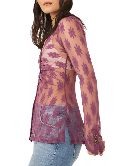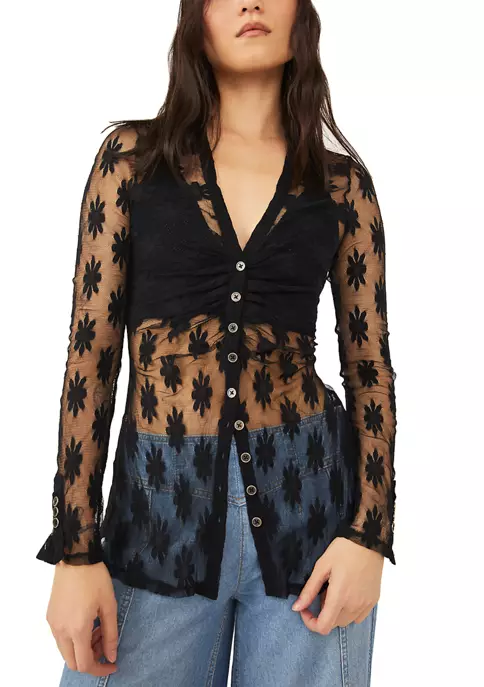Decorated with delicate flowers, this shirt from Free People looks great layered over your favorite bralette or tank top.