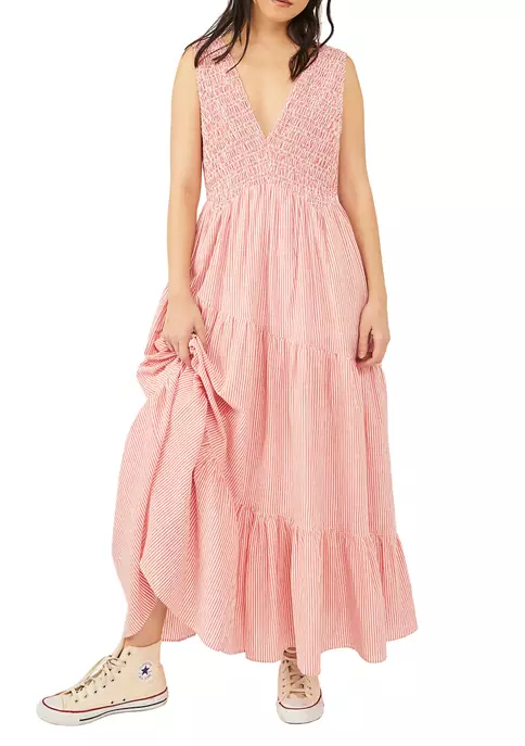 Get ready in the breezy design of the Free People Juno Maxi dress with a shirred detailing.