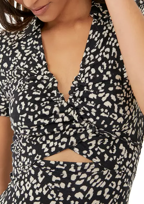 Perfectly printed in a timeless mini dress silhouette, this essential version from Free People is featured in a classic short sleeve design with cutout detailing at the center for added shape and dimension.