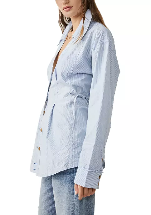 Start showing off your style in this classic Free People button-down top. Perfect for any occasion, this top features a collar at the neckline and long drop-shoulder sleeves.