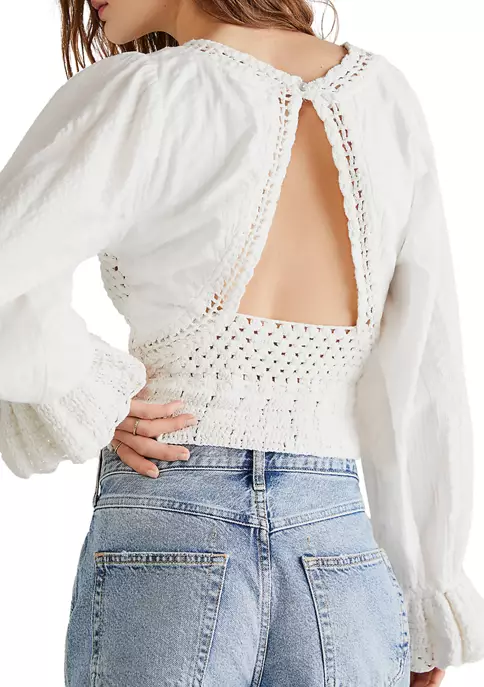An open back design and intricate crochet details punctuate the Megan Top by Free People.