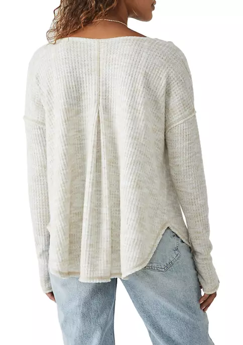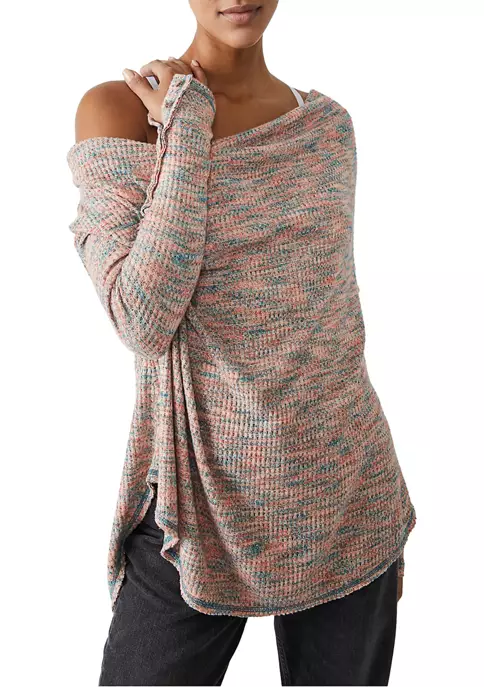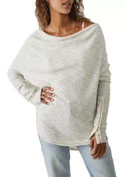 Slouchy texture and drop shoulder sleeves enhance this top by Free People, while button details on the sleeve add interest.