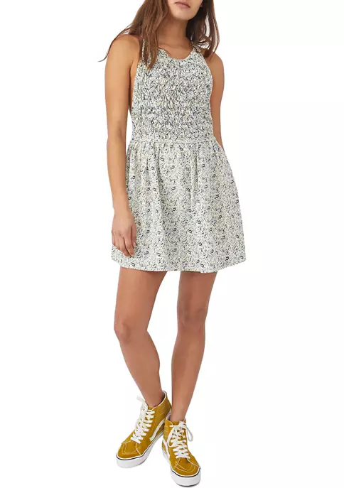 So sweet in an apron-style silhouette, this essential mini dress from Free People features a textured top piecing with cross-straps at back for added dimension.