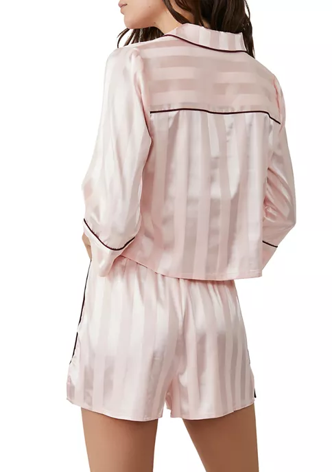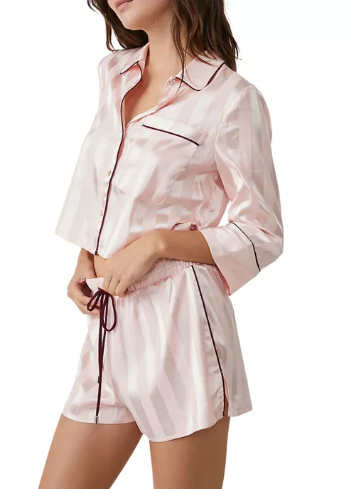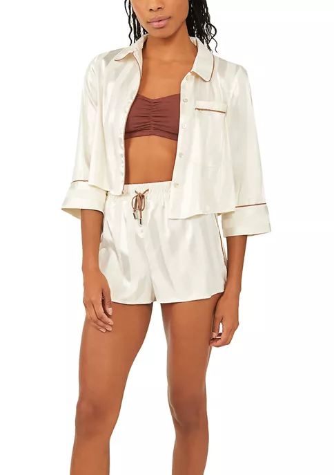 Have sweet dreams in this so cozy pajama set, featuring a classic button-up sleep shirt and coordinating pull-on shorts in a retro-inspired floral print.