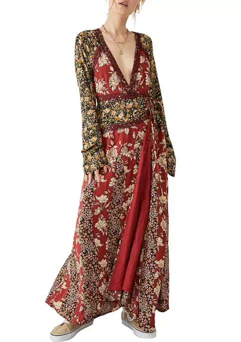 A plunging V-neckline and billowy blouson sleeves add a feminine flair to the Tilda Dress from Free People, complete with a figure-flattering wrap silhouette.
