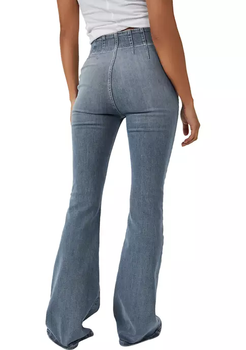 A flared leg adds a hint of 70s-inspired style to the Jayde Jeans from Free People. Pair these jeans with a bell-sleeve top for the ultimate retro look.
