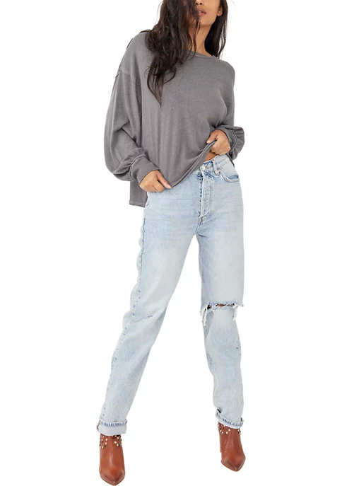 Rope in these stylish Lasso jeans by Free People, which feature destroyed knees in a light wash.